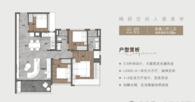 云建上品项目共规划了5栋室第,总户数约766户,车位配比高达1014个,充实满脚了业从的泊车需求。项目绿地率达到35%,营制出舒服末路人的栖身。而正在户型设想上,项目推出了建面约88至142平方米的三至四房产物,涵盖了刚需、改善等多种需求。每一款户型都颠末精研细磨,力图正在无限的空间内创制出无限的可能。